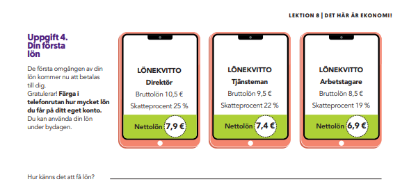 Eleverna kan kontrollera sin lön i arbetsavtalet från lektion 5.